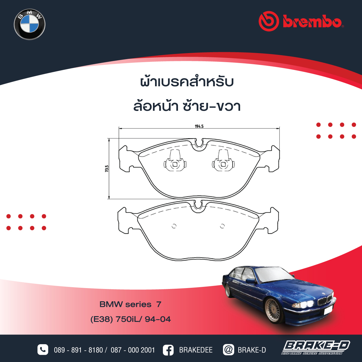 ผ้าเบรกหน้าBREMBO สำหรับ BMW (E38) 750iL