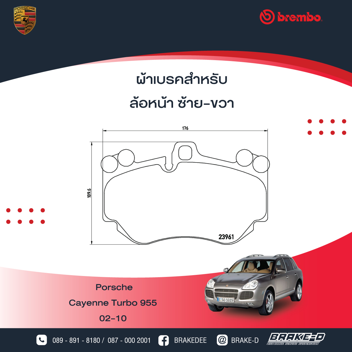 ผ้าเบรกหลังBREMBO สำหรับ PORSCHE Cayenne Turbo 955