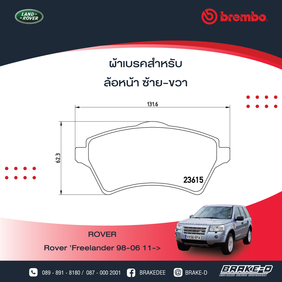 ผ้าเบรกหลังBREMBO สำหรับRangeRover Freelander [L314]1.8 2.0 2.5,[L359]1.8'2.0'ปี1998-2006