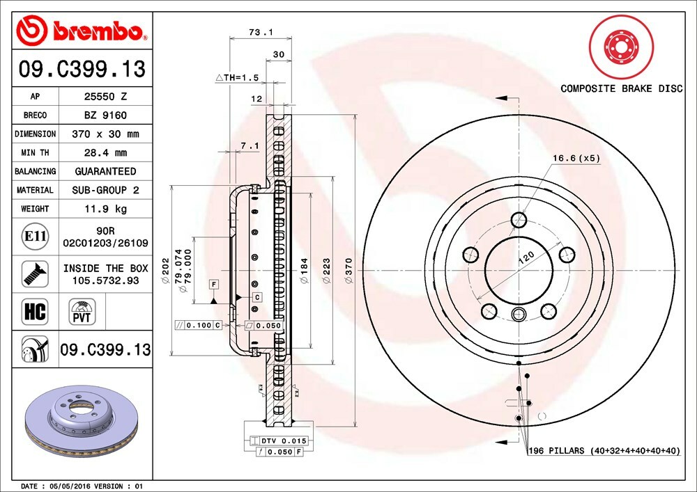 Brembo จานเบรกหน้าสำหรับ BMW series3 F30, series4 F32