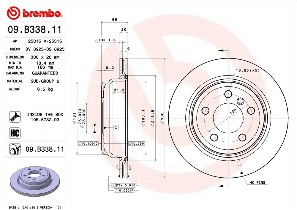 Brembo จานเบรกหลังสำหรับ BMW series 3 F30, ซรส 4 F32, ซรส 1 F20 F21
