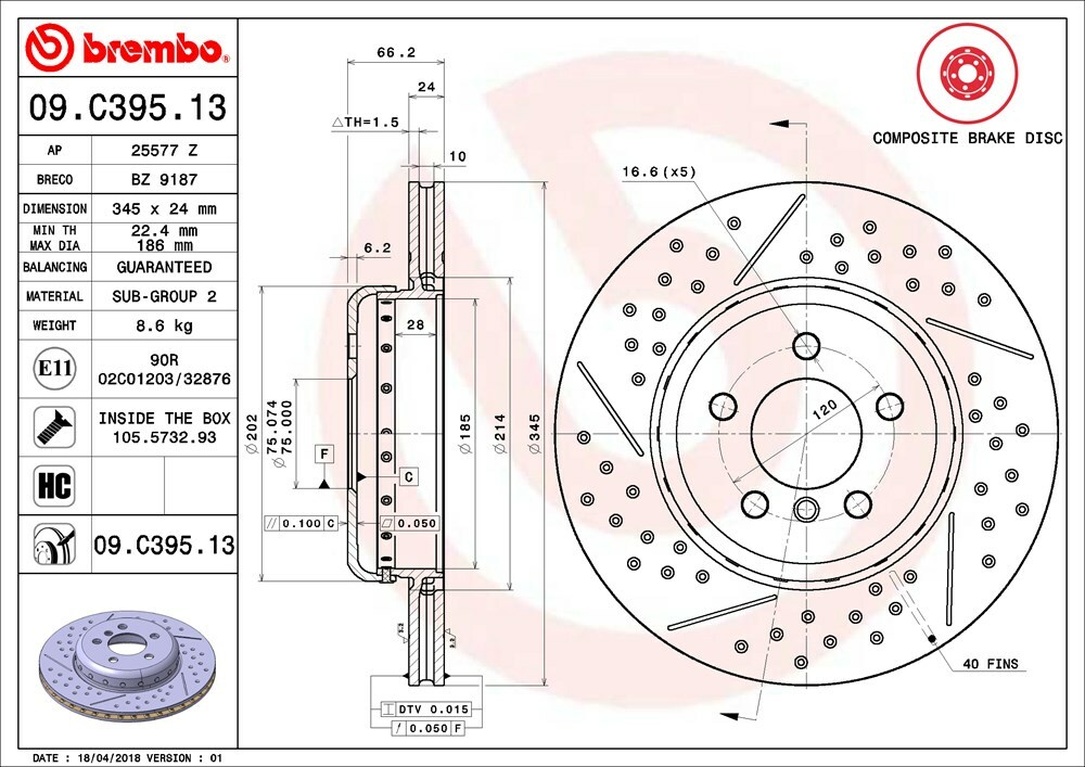 Brembo จานเบรกหลังสำหรับ BMW series 3 F30, series4 F32 Drilled/Groove