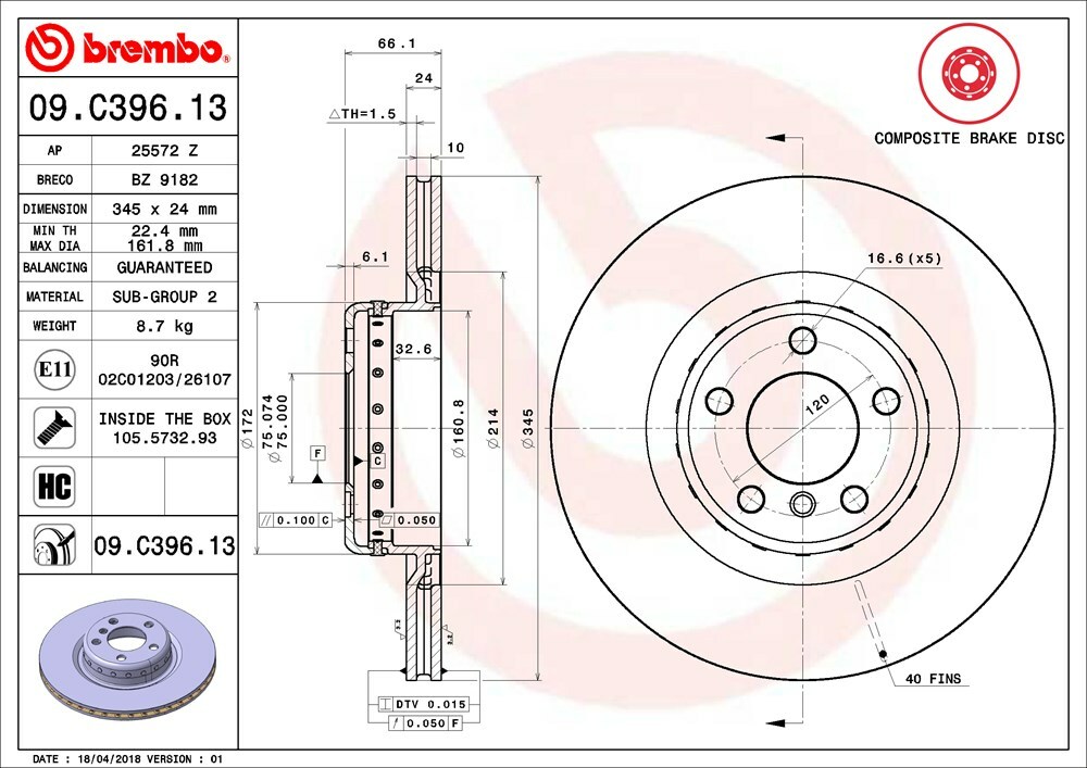 Brembo จานเบรกหลังสำหรับ BMW series3 F30,series 4 F32,series 1 F20 F21