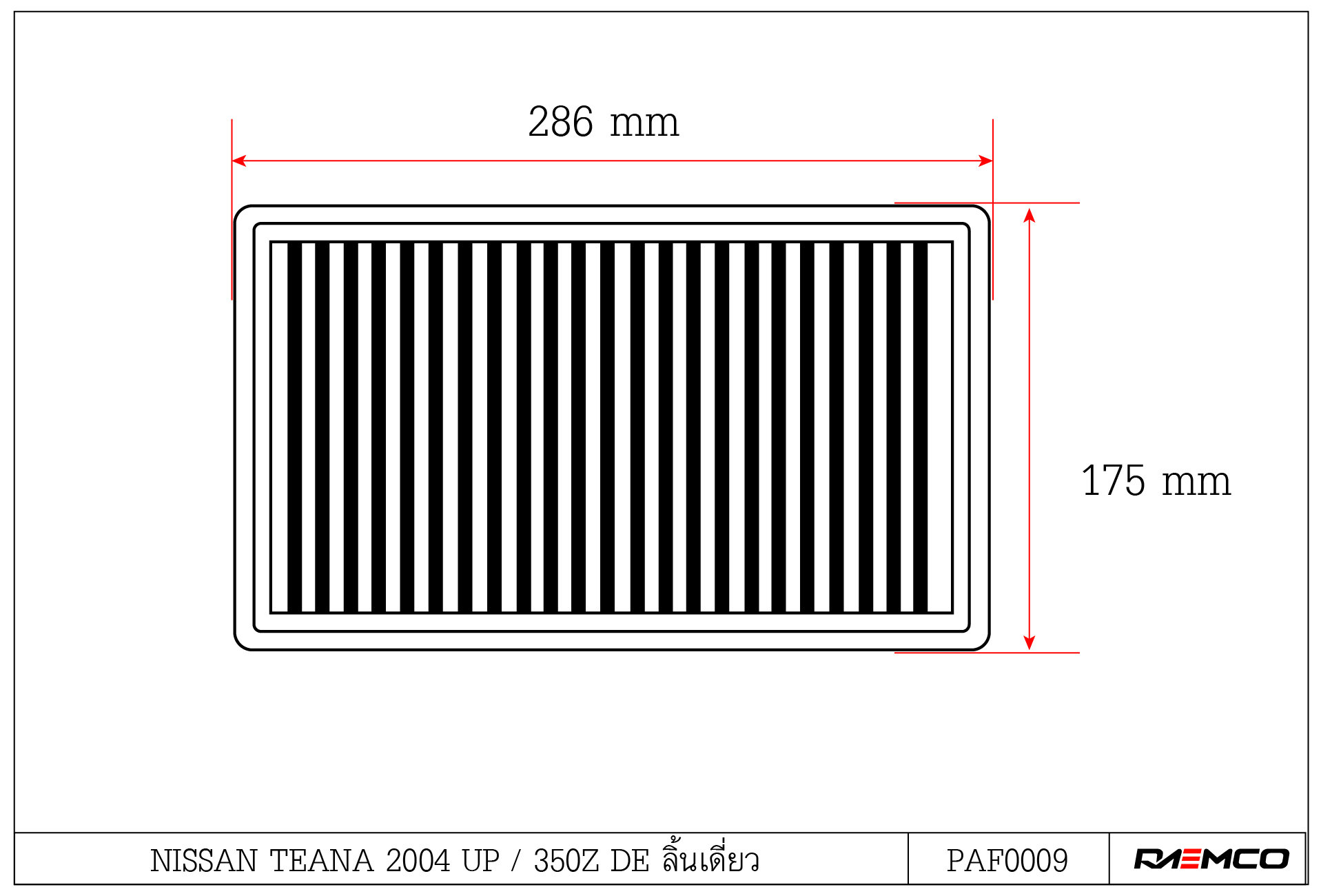 RAEMCO กรองอากาศรถยนต์ แบบซักล้างได้ สำหรับ NISSAN TEANA 2004 / 350Z ลิ้นเดี่ยว